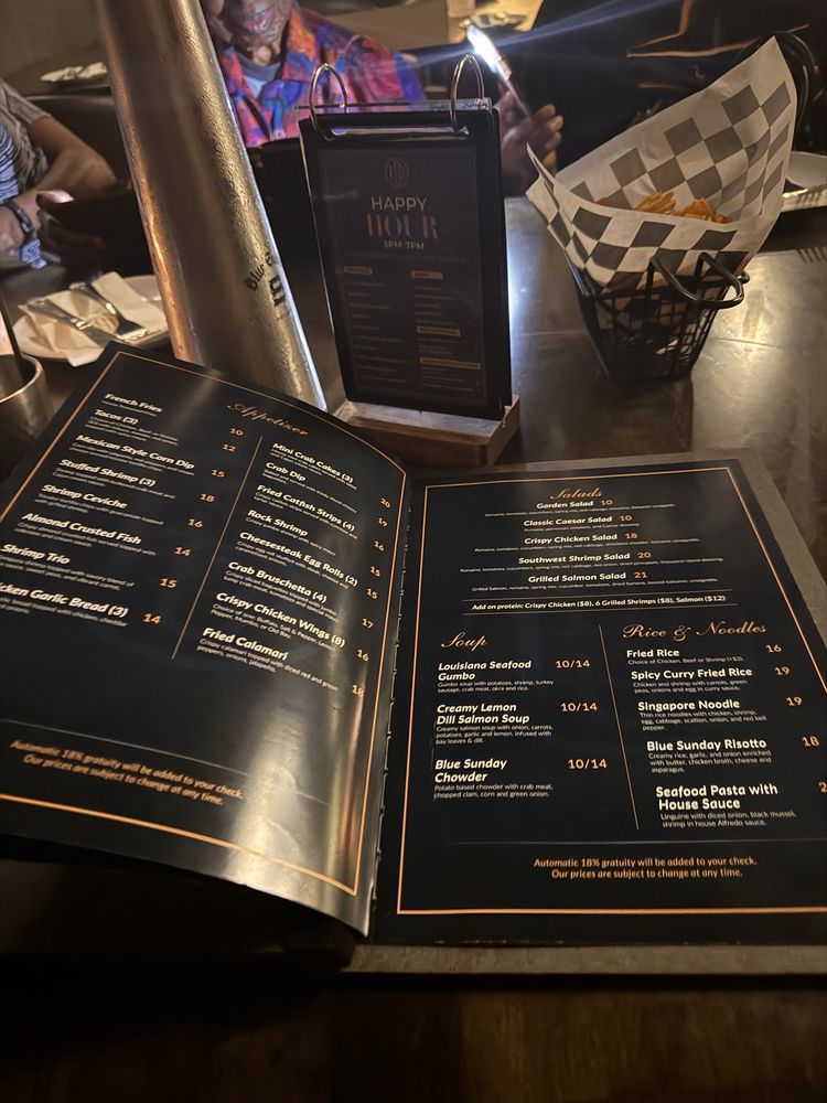 “ I recently had the pleasure of dining at Blue Sunday, and I can confidently say it's a gem worth visiting! I appreciate them being able to sit a party of 12 without prior notice. The food is absolutely delicious, with every dish bursting with flavor and prepared to perfection. From appetizers to dessert, everything was thoughtfully crafted and tasted amazing. What truly sets Blue Sunday apart, though, is the incredible customer service. Big shout out to my waiter Gavrielle. The staff was attentive, welcoming, and went above and beyond to make sure our experience was flawless. Whether it was helping us navigate the menu or checking in to ensure everything was to our liking, their kindness and professionalism truly stood out. If you're looking for a place with exceptional food and top-notch service, Blue Sunday is the spot. Highly recommended! #EatGoodAndBeHappy ”